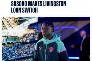 官方:曼城20岁中场苏索霍租借苏超利云斯顿,租期一个赛季