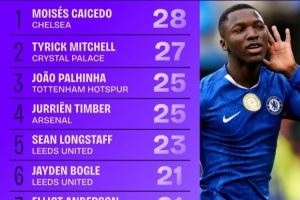 体育资讯10月7日讯 Squawka统计了本赛季英超抢断榜前十,切尔西中场凯塞多28次位居第一,阿森纳后卫廷伯25次第四。