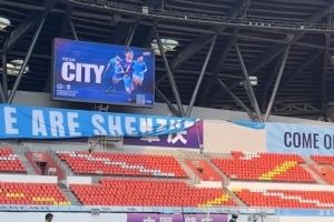 肇庆新区体育场能容纳2万左右的球迷,据记者现场了解,这场比赛球票卖的非常好,目前已经超过了1.6万。当地温度33度,现场感觉还是很热的。