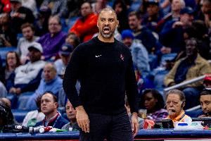 乌度卡:“确实有一点差距。你知道的,对手现在都会集中防守持球人,而且在我们接球时就会上前施压。这种情况已经连续两场比赛出现了——我们本应该先稳住位置,然后突然发起进攻。我觉得我们现在打得太‘直立’了(指身体姿态缺乏侵略性),而对手本赛季的防守策略就是尽量贴防我们的球员。所以我们必须在这方面多下功夫,想办法提升进攻节奏,不管是通过挡拆还是无球跑动,但目前我们在这方面做得并不好。而且不只是快攻,我们肯定也希望在半场进攻中打得更快速、更有冲击力。”
